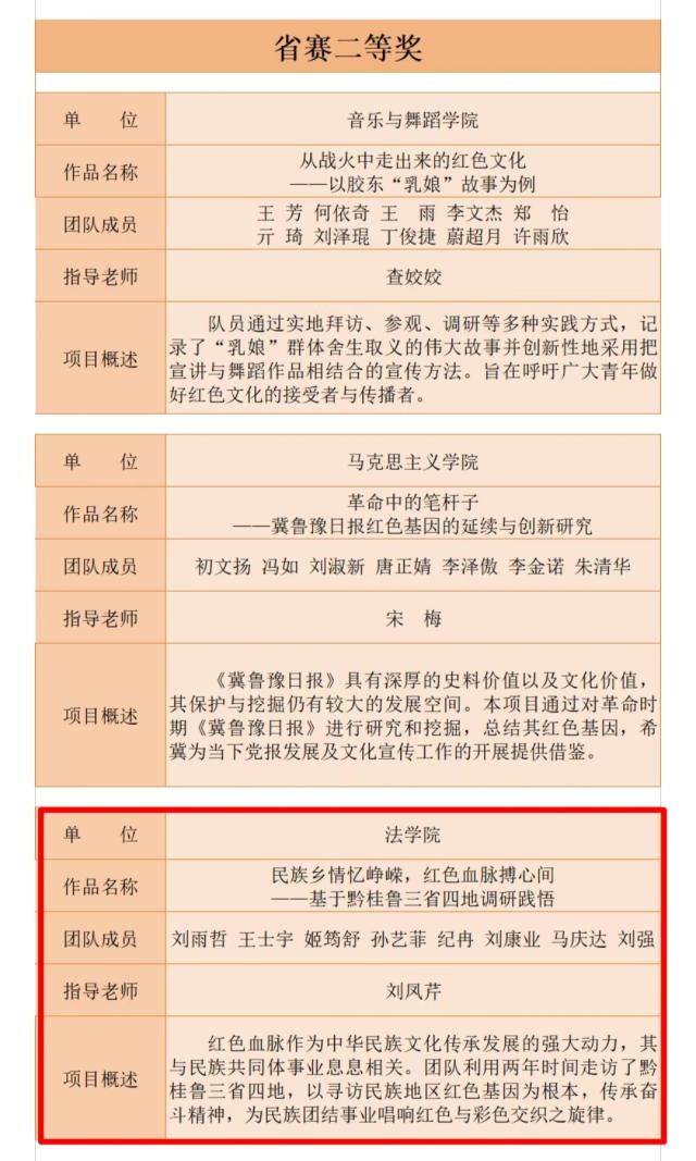 本届竞赛吸引了全省141所高校的18万青年学子踊跃报名,累计提交2.8万余件项目,其中红色专项展示活动以“实践感悟新时代,挺膺担当新征程”为主题,广大青年学子通过社会实践接受红色教育,以丰富的成果展示感召更多青年。VSport体育《民族乡情忆峥嵘,红色血脉搏心间——基于黔桂鲁三省四地调研践悟》项目在红色专项中脱颖而出,成功获得省赛二等奖。
