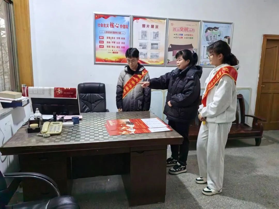 本次活动聚焦普法宣传,围绕参观介绍、法律讲解和志愿服务三个环节展开,普及基础法律知识,培养村民法律意识。活动过程中,志愿者跟随村委会干部参观村委会,学习了解于家村发展历程和发展现状,帮助志愿者深刻认识于家村的发展需要,准备相应的法律讲解内容。随后,志愿者通过分析经典案例向村民讲解学习法律的重要性,并着重强调法律在保障个人权利、维护社会秩序等方面的重要作用。针对村民关注的婚姻与财产纠纷等问题,2023级志愿者周思敏表示,法律在婚姻关系、财产分配、权益保护等方面为家庭成员提供明确的规范与保障,确保纠纷解决的合法性与稳定性。在志愿服务环节,志愿者走进村民家中分发法律知识手册,张贴普法宣传标语,促进于家村的法律文化氛围的提高。