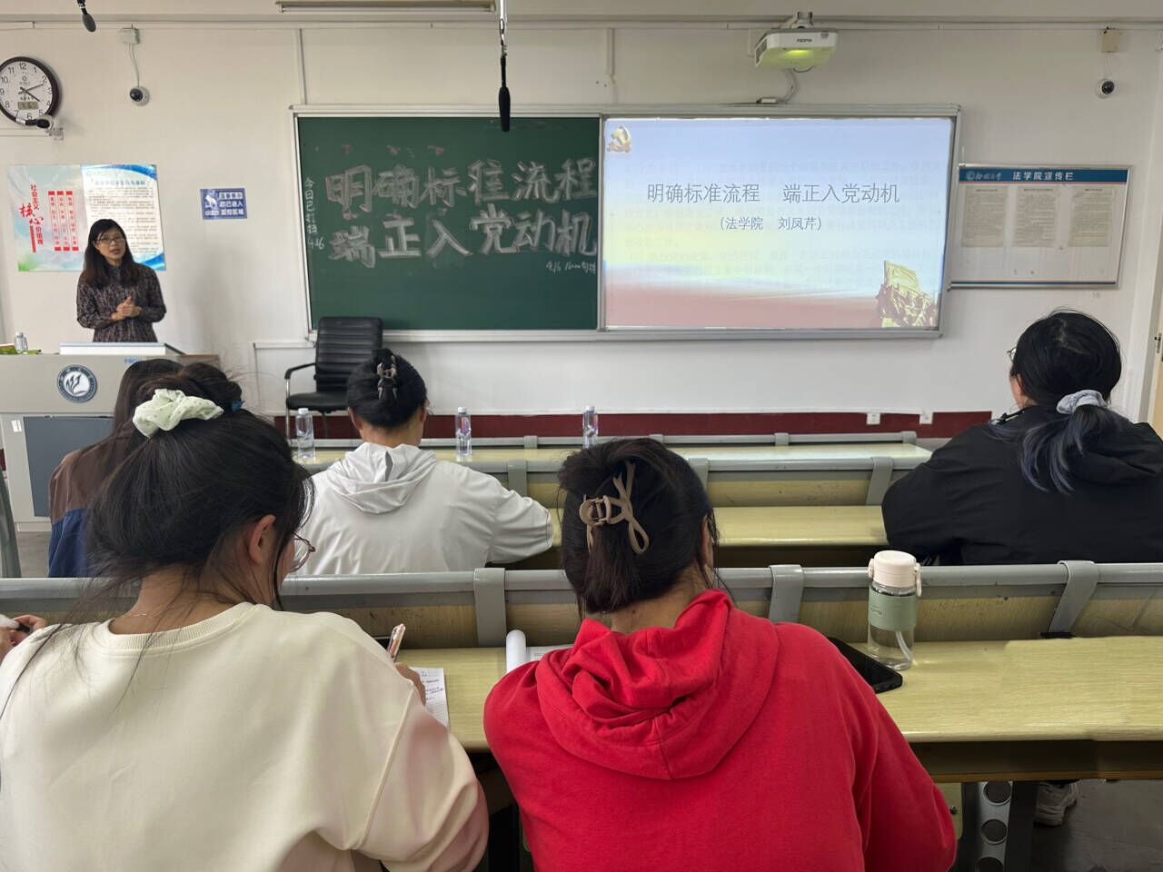 4月16日,VSport体育团委书记、法学系员工党支部书记刘凤芹于西校区10#C524讲授以“明确标准流程,端正入党动机”为主题的党课,VSport体育全体入党积极分子参加党课学习。