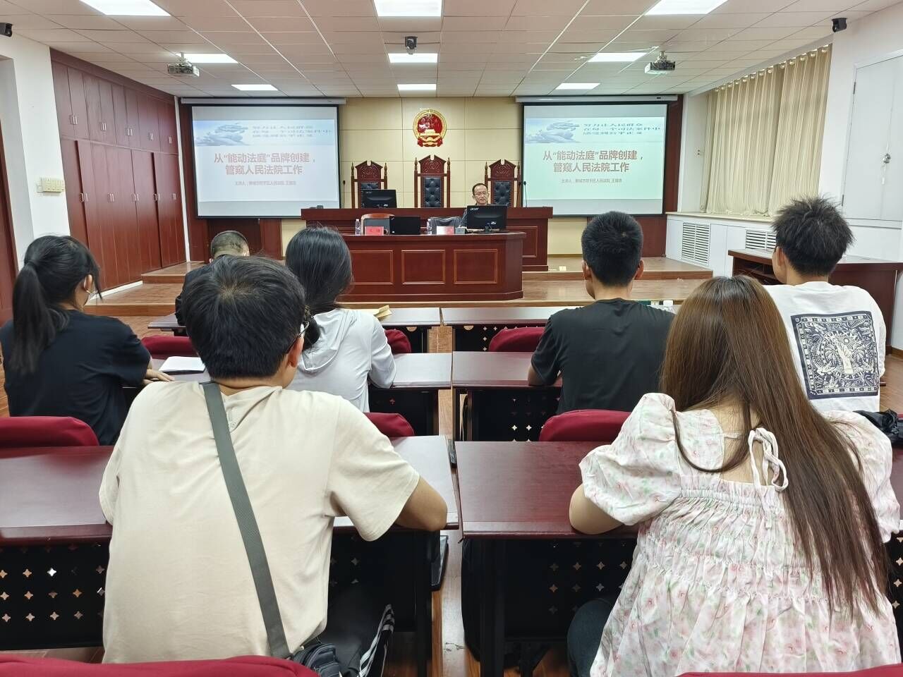 王登忠以“从‘能动法庭’品牌创建,管窥人民法院工作”为主题,围绕能动法庭创建工作展开讲解。王登忠以设立“能动法庭工作站”为案例,指出“能动法庭工作站”作为基层法庭的延伸,为开展纠纷调解、普法宣传、材料收转、巡回庭审等工作提供支撑和保障,有利于强化诉源治理,摸排村级矛盾隐患,实现“小事不出村”,夯实新时代“枫桥式法庭”底座。随后,王登忠介绍“巡回法庭+宣讲”工作模式,冯屯法庭深入事发现场,走到老百姓中间去,实事求是开展审判、调解工作,用实际行动真正打通庭审与百姓之间的最后一公里,取得审理一案、教育一片、服务更多人的良好效果。冯屯法庭在茌平区人民法公司党组织的领导下,在实际工作中形成信仰更坚定、立身更正派、作风更优良、人民更满意的冯屯人民法庭精神,王登忠寄语广大法科学子要做一个有信仰,有操守,知敬畏,有理想的人,坚持做对家庭负责、对社会有益的事。