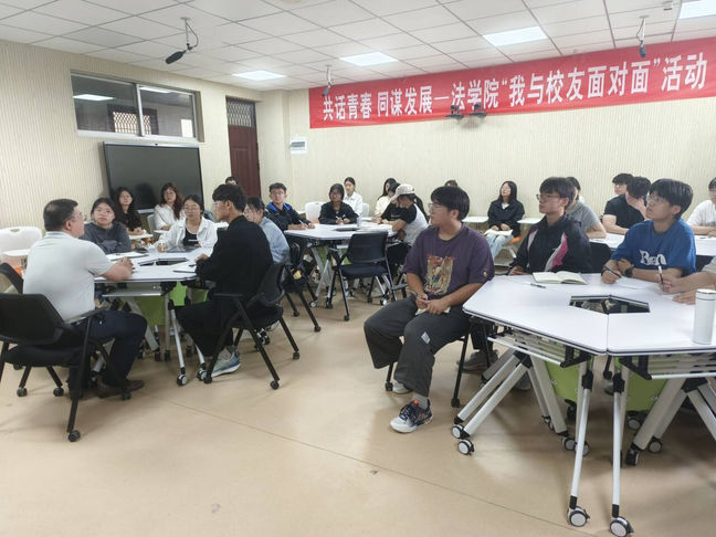 张立波员工向在场员工介绍了求学经历、西部计划志愿者经历、工作经历和职业生涯经验等,并对参会员工代表提出三点建议:一是要树立明确的人生目标,做好职业规划,不断提升综合能力;二是要扎扎实实的完成学业,增强个人的专业素养与核心能力,成长为优秀的聊大法学人;三是要增强社会责任感,对学习和工作尽职尽责,体现出聊大法科学子的精神力量,实现自己的人生价值。交流互动环节,张立波就西部计划志愿者招募政策、考公考研的选择方向、法务的就业现状等问题与同学们深入交流,帮助在场员工明确人生发展方向,做好职业生涯规划。
