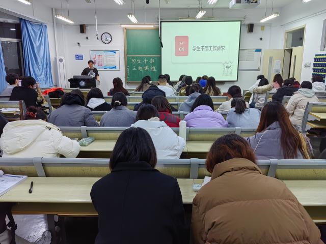 刘强以提升员工干部工作能力、提高部门工作效率为出发点,围绕员工干部是什么、怎样履行职责以及如何做好组织工作三个问题开展主题培训课程。宣讲过程中,刘强从阐述员工干部的定义切入,指出员工干部是协助老师、服务同学的员工代表,要时刻坚守全心全意为同学服务,全心全意为同学做实事的核心要义,真正做到心系同学,权为同学。针对员工干部如何认清职责等问题,刘强提出员工干部要提升团队有效沟通能力、权衡学习压力与工作重担的建议,帮助干部找准团队站位,合理分配工作职责,促进部门协调发展。随后,刘强以自身经历为基础分享经验,强调员工干部要培育未雨绸缪的超前意识,善于抓住并解决关键性问题,强化组队分工协作的指挥能力,更要有宣传动员的号召力和强大的团队组织力。在场学员反响热烈,纷纷表示要坚持为同学服务的工作路线,要时刻牢记员工干部工作原则,发挥员工榜样的引领示范作用。
