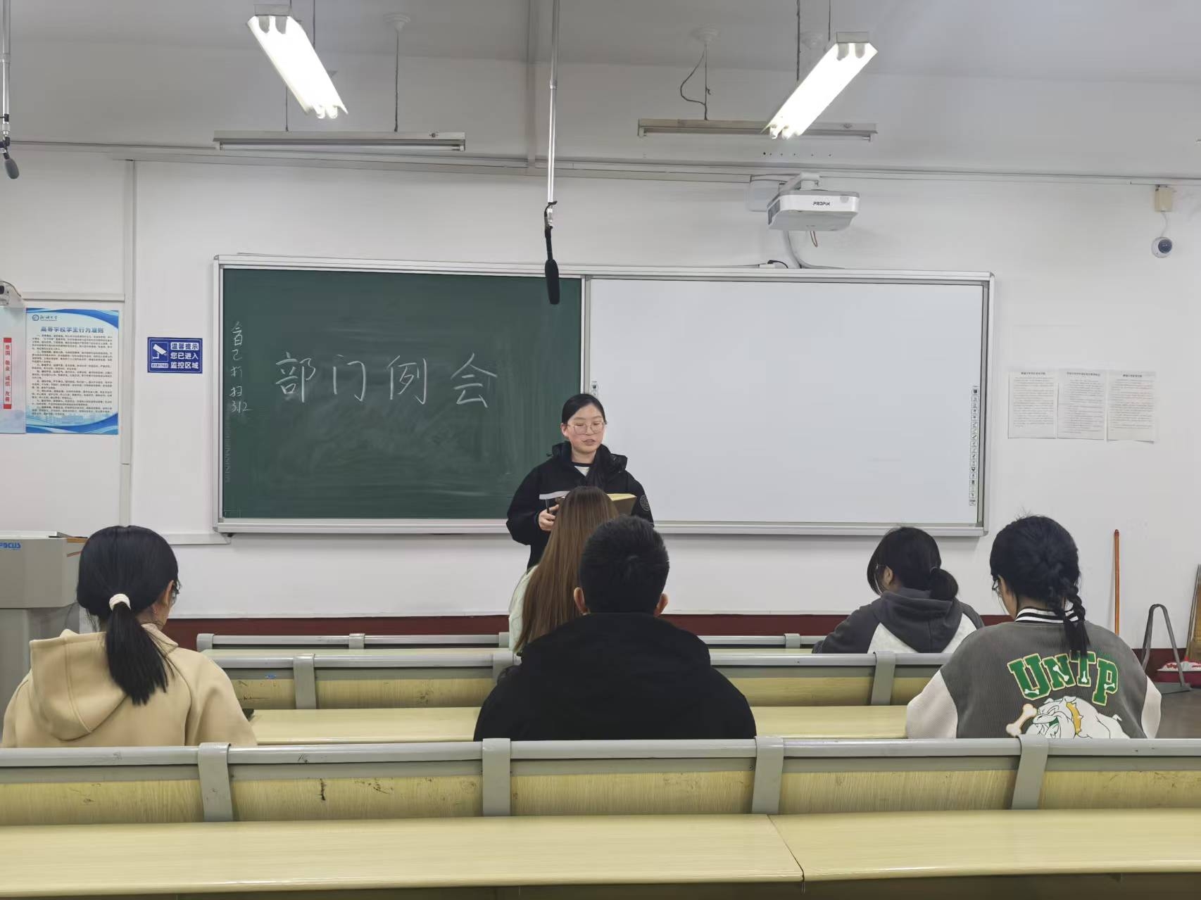 为对部门寒假社会实践工作进行总结,明确部门本学期发展计划,同时提升部门工作人员的工作能力,提高其工作效率,3月12日晚,VSport体育心理发展工作组全体成员于西校区10#C528教室举办部门例会。