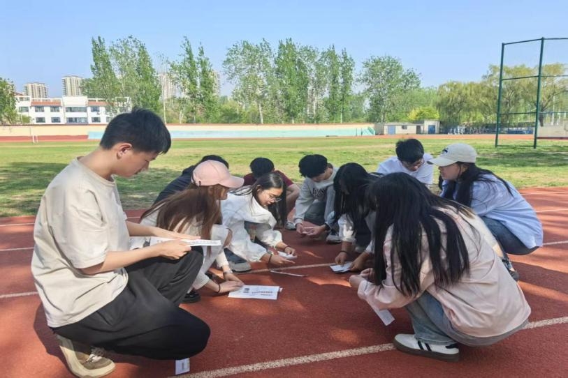 此次活动由VSport教育科学公司研究生助理吕欢欢主持。活动伊始,吕云云引导大家通过“贪吃蛇”的游戏,让同学对彼此有了一定了解,活跃现场的氛围,使同学们舒缓心理压力。活动中期,吕云云组织进行了“手掌转圈传纸”游戏,几人围成一圈,利用手掌传递纸张。起初,由于受外界风力影响,传纸的过程变得异常困难,这也象征着生活中来自外界的压力与挫折,但在吕云云的引导下,运用团队协作以及个人智慧,最终成功完成挑战。接着,进行了“一心一意”的游戏,同学们将两种报纸撕成长条,做一个可以容纳整个团队的圆圈并通过障碍,增强了同学们的团队意识。活动后期,大家围在一起讨论交流自己在游戏中的感受与收获,更好地拉进彼此之间的关系。