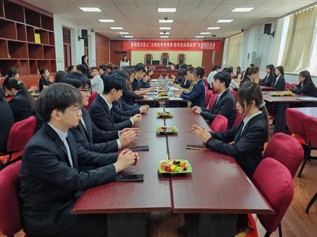 刘洁以习近平总书记对当代青年的寄语为切入点,对在场员工提出四点殷切期望。其一,坚定理想信念,在纷繁复杂的舆论浪潮中坚守法治信仰,将个人理想融入法治中国建设的大目标中;其二,扎根实践,锤炼专业底色,以“不驰于空想、不骛于虚声”的治学态度,在模拟法庭、普法宣传中磨砺专业锋芒、培植为民情怀;其三,勇挑重担,彰显先锋本色,在专业学习中敢啃硬骨头,在志愿服务中担当孺子牛,用行动擦亮胸前的团徽;其四,锤炼品格,锻造坚韧底色,以“咬定青山不放松”的毅力克服困难,在时代浪潮中书写无悔的青春篇章。