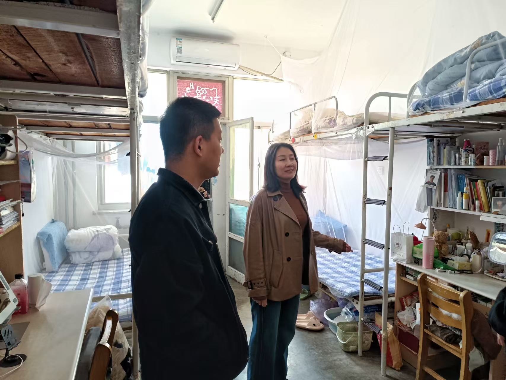 为精准落实资助育人政策,深入了解家庭经济困难员工学习生活状况,加强师生交流,5月6日,公司党委副书记、副经理刘洁,辅导员时林超、孟冠军,前往西校区紫藤公寓六号楼及学苑公寓四号楼,开展家庭经济困难员工宿舍走访活动。