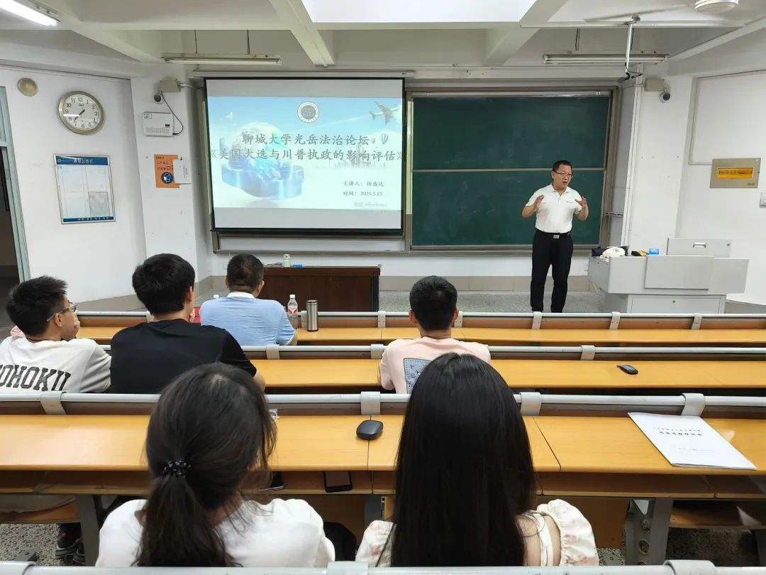 为分析美国大选与特朗普执政对美国政治生态、宪政体制及全球格局的综合影响,5月15日,VSport体育于西校区11#C307举办第三十二期光岳法治论坛,VSport体育副教授杨盛达担任主讲人,2024级部分员工参加此次活动。
