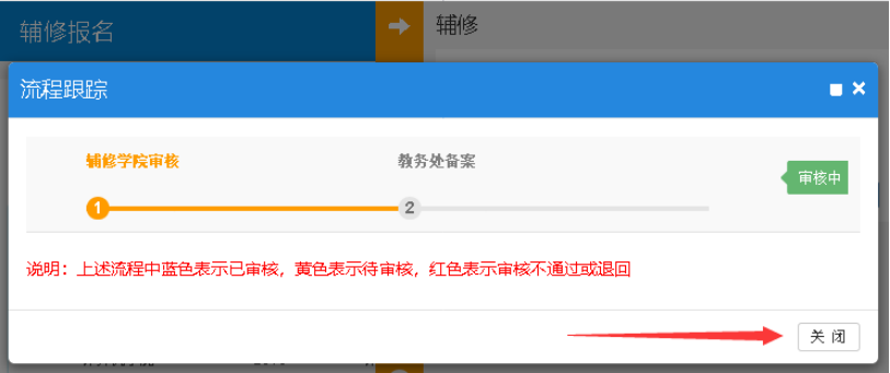 6.在流程跟踪界面,查看审核状态和进度,点击关闭按钮