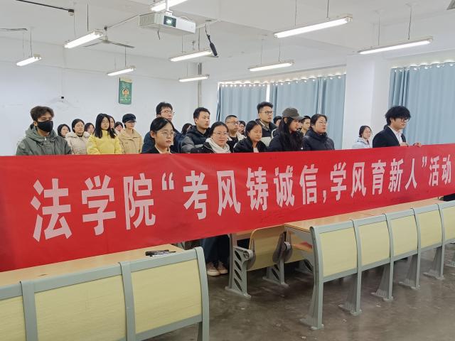 此次活动紧扣诚信参加考试、建设优良学风这一主题,从考纪宣讲、经验分享、宣誓签名三个环节展开。活动过程中,主讲人围绕考试注意事项、考试纪律要求等多方面具体讲解,明确划定诚信应考的红线和底线,严肃指出考试作弊对个人发展、班级风气、社会诚信建设产生的不良影响,要求在场员工坚守诚信底线,严守考试纪律。随后,2024级员工顾颖针对法学特点分享自身备考经验,她提出制定动态切实的复习计划、梳理清晰知识框架是实现高效复习的重要途径,并强调员工应保持良好的考试心态,及时缓解焦虑情绪,以从容的姿态应对每一场考试。最后,全体员工在宣誓人的带领下,面对“考风铸诚信,学风育新人”的横幅庄严宣誓,并依次有序签名,将诚信应考的承诺具象化落实,进一步强化在场员工的诚信意识和规则意识。